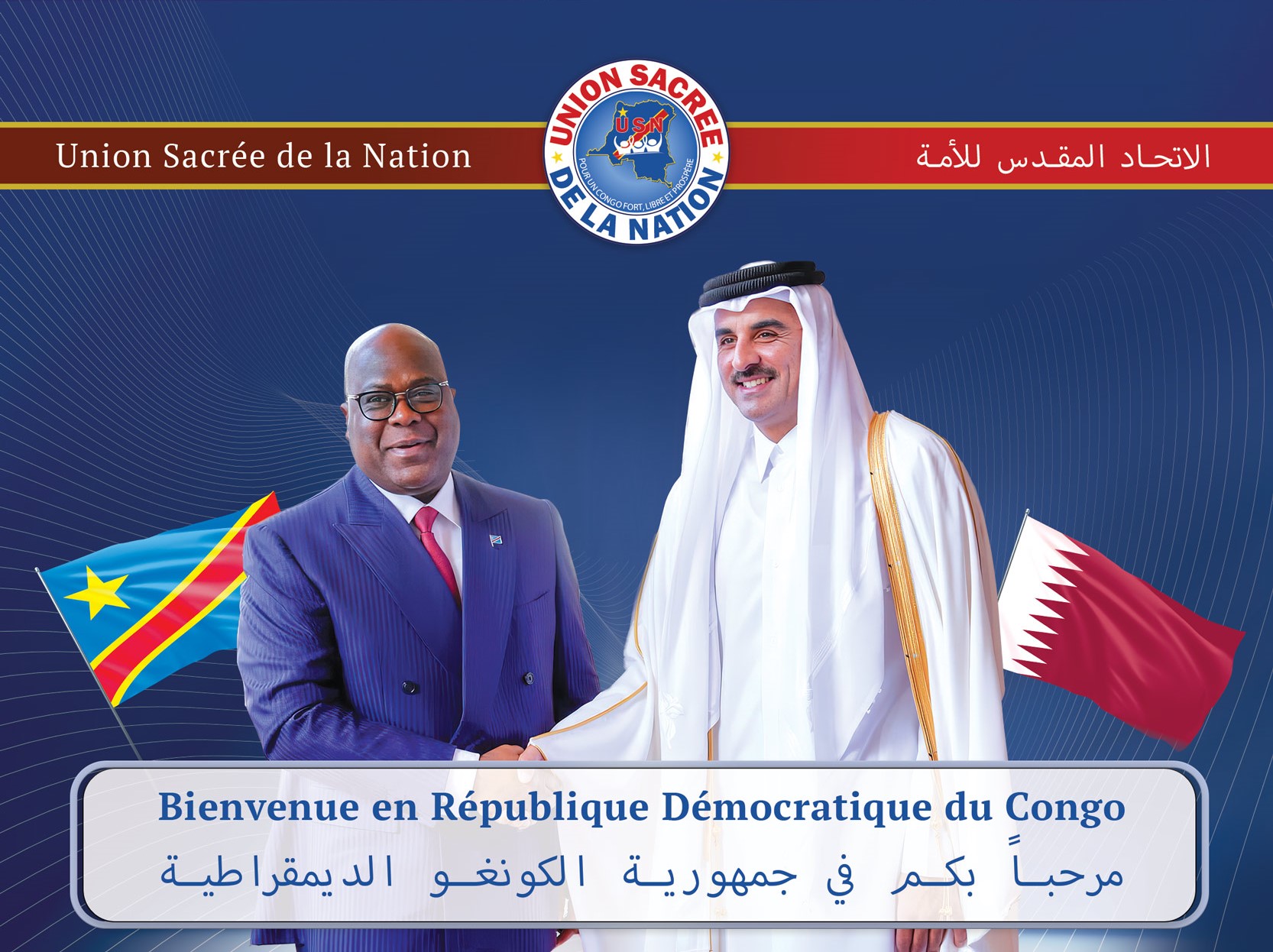 Le Secrétariat Permanent de l’Union Sacrée de la Nation (USN) informe l’opinion que comme annoncé dans un communiqué antérieur, l’Emir de l’Etat de Qatar, Son Altesse Sheikh Tamim Bin Hamad Al Thani, arrive à Kinshasa ce vendredi 21 novembre 2025.