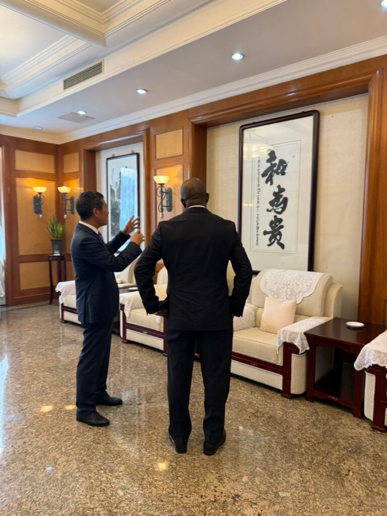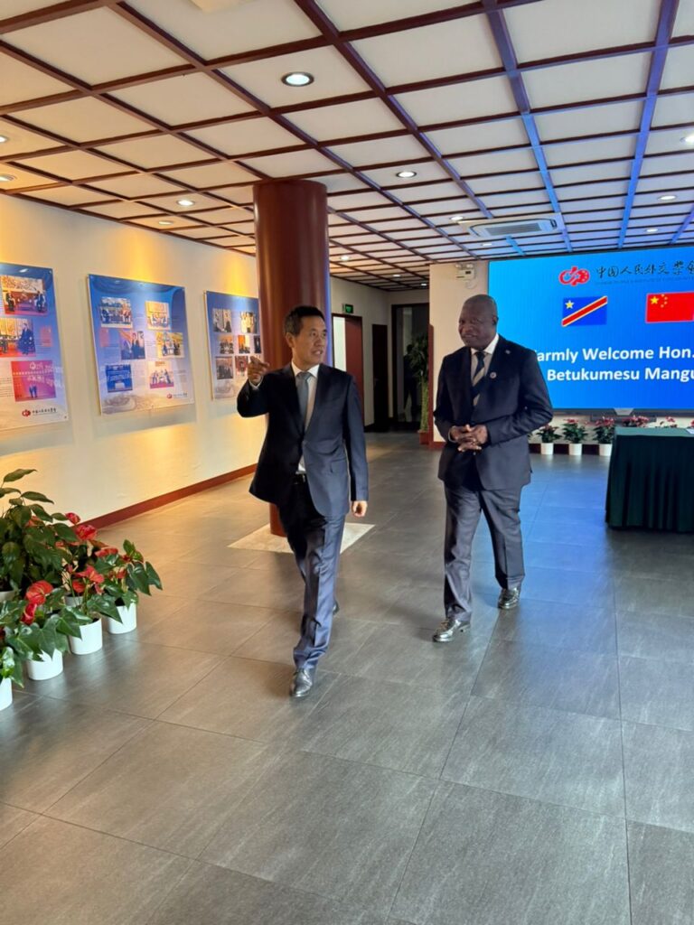 Invité en tant que professeur et secrétaire permanent de l’Union sacrée de la nation de la République démocratique du Congo, il a été reçu et a eu des échanges fructueux à l’Institut Populaire Chinois des Affaires étrangères (CPIFA).