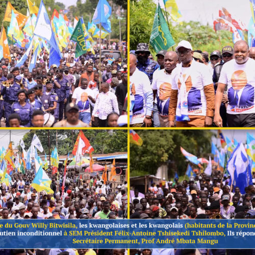 Sous la conduite du Gouv Willy Bitwisila, les kwangolaises et les kwangolais ont exprimé leur soutien inconditionnel à SEM Président Félix-Antoine Tshisekedi à l’appel du Sec. Perm. Prof André Mbata Mangu